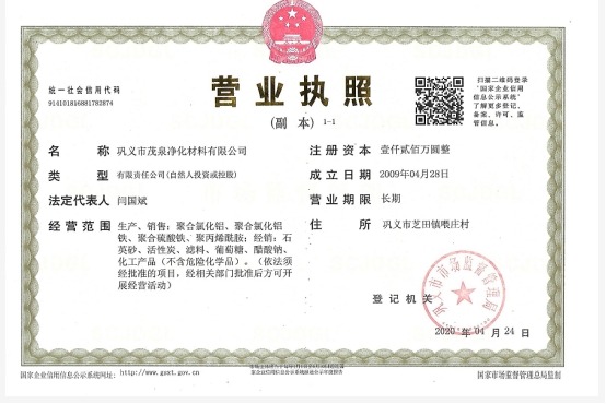 鞏義市茂泉凈化材料有限公司是集研制、開發、設計、生產、銷售服務于一體的凈水材料生產廠家,主要生產銷售聚合氯化鋁、聚丙烯酰胺、聚合硫酸鐵、堿式氯化鋁等產品。公司技術力量雄厚,我公司秉承“提供優良產品,讓客戶滿意”的經營原則,為中小型企業提供產品和服務......